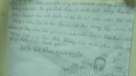 | Bức thư một bé gái bị xâm hại tình dục để lại trên tường của Phòng tham vấn của Dự án "Ngôi nhà bình yên". |