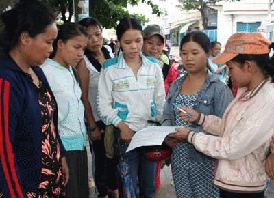| Công nhân Công ty Hải Vinh đang ký đơn kiện giám đốc ra Toà để giải quyết quyền lợi.. |